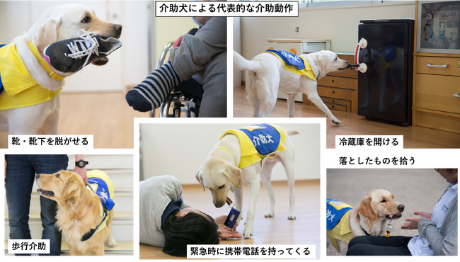手や足に障がいのある人の日常生活を手助けするために特別な訓練を受けた犬である。落とした物の拾い上げ、ドアの開閉、携帯電話を探して持ってくるなどの作業を行う。2024年4月1日時点で、全国で活動している介助犬は59頭であり、それに対して介助犬を必要としている人は15,000人ほどいると言われているため数が少ないのが現状である。
