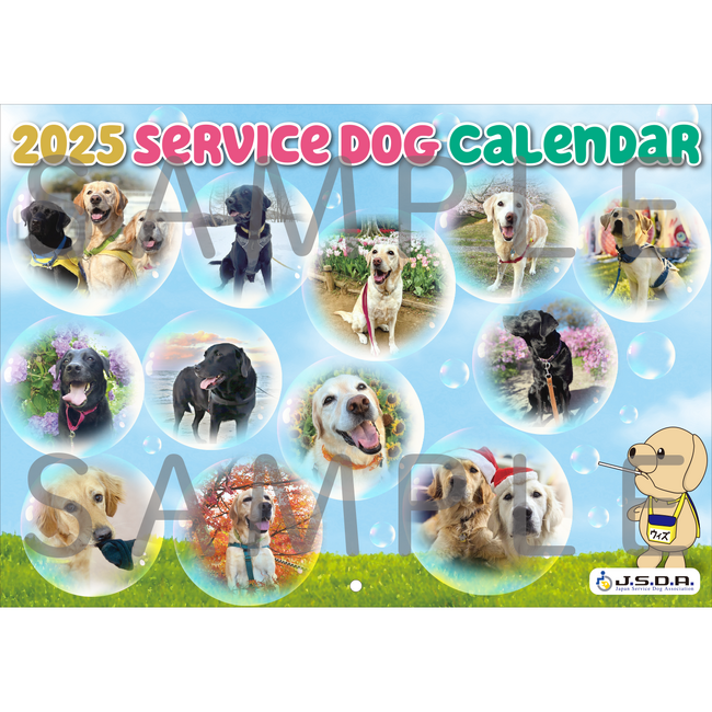 (社福)日本介助犬協会(以下、協会)は、介助犬育成普及活動に繋がるカレンダーの予約販売を9月30日より開始した。今年のカレンダーのテーマは「シャボン玉」。ふわふわと浮かぶシャボン玉の中に犬たちの写真が入っており、可愛いデザインになっている。各月の写真は、季節に合わせた介助犬の訓練犬やパピー、また介助犬にならなかった犬たちの写真を使用しており、見るだけで笑顔になれるカレンダーだ。