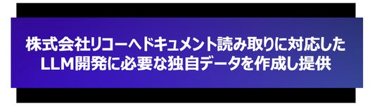 今回の当社が支援したデータ作成と提供は、経済産業省・NEDOが実施する国内における生成AI開発力強化を目的にしたプロジェクト(以下、GENIAC)[※2]」の第2期(2024年10月発表[※3])の中で行われ、リコーによるきめ細かな画像認識を必要とするビジネス文書の読解精度を高めた独自のLLM開発に活用されました。