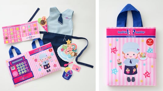 今回はB‐R サーティワン アイスクリーム株式会社(所在:東京都品川区上大崎3-1-1/代表取締役会長兼社長 CEO ジョン・キム)とのコラボレーション商品で、サーティワン アイスクリームの21種のフレーバーや、デコケーキ、トッピングなどの他、スタッフユニフォーム風エプロンも付いて、いつでもどこでもサーティワンスタッフになりきれる!という内容になっています。