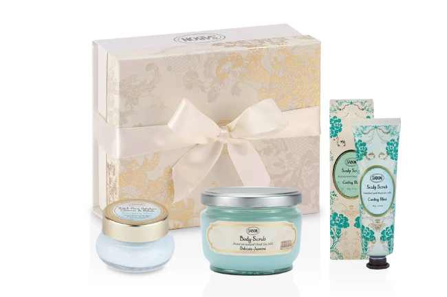 セット内容 ボディスクラブ デリケート・ジャスミン 320g、ヘッドスクラブ リフレッシング 60g、フェイスポリッシャー リフレシング 15mL、ギフトボックス