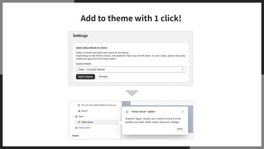「UR: Smart Video Embed」では、動画埋め込みのためのアプリブロックを1クリックでテーマに追加できます。難しい操作は必要なく、誰でも簡単にアプリを始められます。