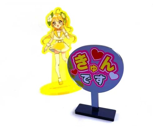 推しアクスタを1個からオリジナル作成。ME-Qの簡単シミュレーターで手軽に作成できます。オーロラやラメ入りなど、多彩なアクリルカラーも選べます。