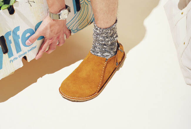 革靴だと重すぎる。スニーカーやビーチサンダルだと軽すぎる。夏のトラッドな足元には、レザーサンダルこそが最適解です。「毎日レザーサンダルでもいい」と考える人がいるほど、欠かせないアイテム。本企画では、「夏はレザーサンダルさえあれば」と題して、7カテゴリのレザーサンダルとそれらを活用した着こなしを紹介しています。たとえば写真のBirkenstock(ビルケンシュトック)の隠れた名作[リュトリー]は、かなり幅広でぽってりとしたつま先が特徴のモデル。金茶カラーのスウェードも相まって愛嬌があり、ソックスとの組み合わせも楽しめます。このようにカジュアルなモデルから、もっとドレッシーなモデルまで、およそ計40足を掲載。自分の理想に合ったレザーサンダルが見つかるはずです。