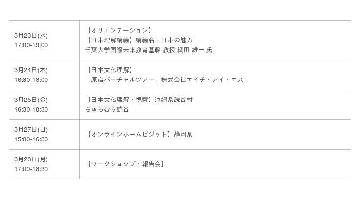 新型コロナウイルス感染症の流行により国境を越えた人の往来が困難な状況においても、将来、日本の外交基盤の礎となる諸外国の⻘少年との交流を継続することは重要です。現在、外務省は対日理解促進交流プログラム「JENESYS」をオンラインで推進しています。その一環として、日本や日本文化に興味を持つモンゴルの高校生・大学生を対象としたオンライン交流プログラムを開催します。本プログラムは全5日間で構成されており、原宿や沖縄読谷村のバーチャルツアー、静岡県の一般家庭へのオンラインホームビジット等を通して、モンゴルの参加高校生・大学生が日本の文化や生活についての知識を深めるとともに、日本人との交流を通じて、日本への絆の強化を目指します。