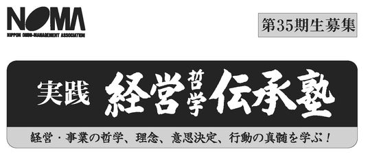 一般社団法人日本経営協会(本部事務局:東京都渋谷区 会長:高原 豪久)は、2024年7月11日~2025年3月6日の期間で全9回にわたり、次世代の経営幹部育成を目的として『実践 経営哲学伝承塾』を開講いたします。現在、第35期生を募集しております。