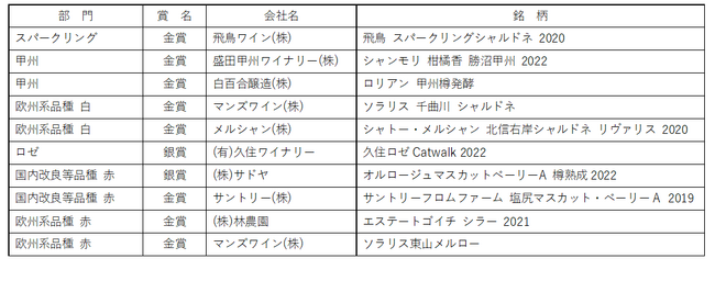 別紙2:Japan Wine Competition(日本ワインコンクール)2023 の審査結果について
