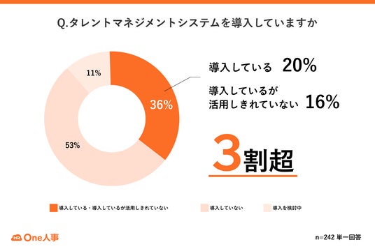 ・人材育成と適正な人材配置を検討するうえで人事部門を支援する「タレントマネジメントシステム」を利用しているとの回答が36%。