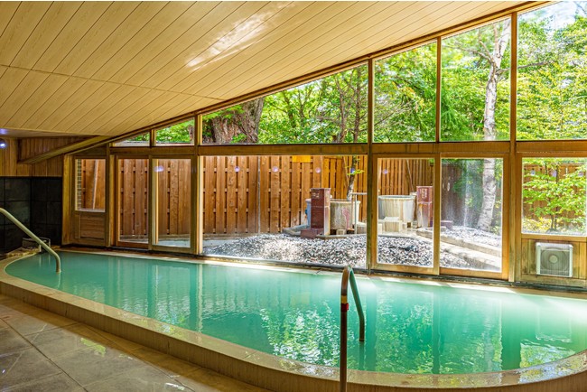 名所「いろは坂」を上り、中禅寺湖や戦場ヶ原を過ぎると、標高約1,500メートルの湯ノ湖のほとりに休暇村日光湯元が建ちます。シラカバやカラマツの木々に彩られたホテルは、建築家“清家清”のデザインで、周辺の自然に溶け込む佇まいは四季の移ろいが感じられ、戦場ヶ原ハイキングや日光東照宮など世界遺産めぐりの拠点にも便利。日本で4番目に濃い硫黄泉と言われる「日光湯元温泉」から引いた源泉かけ流しの温泉が楽しめます。