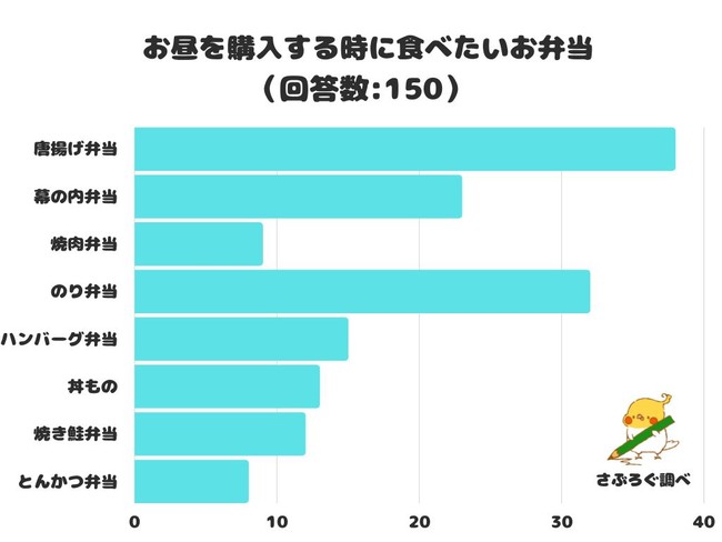 150人にアンケートを行ったところ、「唐揚げ弁当」と回答したのは全体の25.3%でした