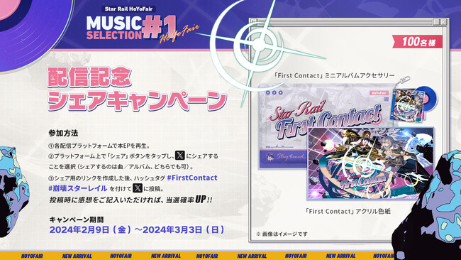 参加方法は本EPを再生した後、「シェア」ボタンからXに遷移し、そこから指定ハッシュタグ #FirstContact #崩壊スターレイル を付けてポストするだけ!