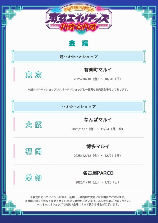 2025年10月10日より「東京エイリアンズ」超ハオ☆ハオショップ&ハオ☆ハオショップを開催いたします。