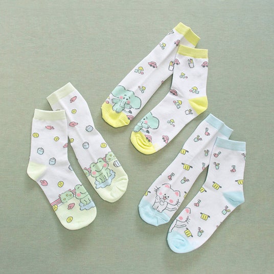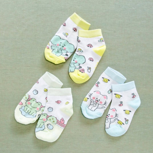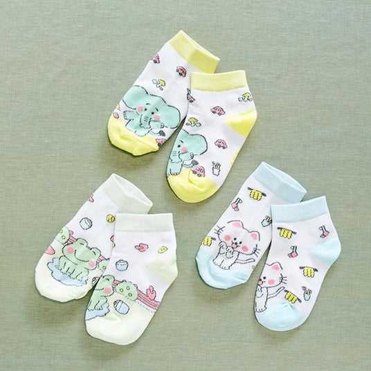 【数量限定・おまけ付き】(レディース)たいそうするゾウ 靴下3足セット(絵本ナビオリジナルグッズ)