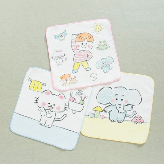 【数量限定・おまけ付き】たいそうするゾウ ハンカチ3点セット(絵本ナビオリジナルグッズ)