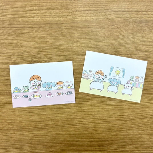 絵本とアクリルキーホルダー1種とのセットには、ポストカード2枚をお付けします。