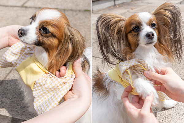 裾・襟元・袖口の縫い目もしっかり伸びるので、愛犬にとっても飼い主にとってもストレスなく着脱できます!