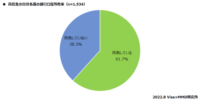 高校生1,534人を対象に、自分名義の銀行口座の所有について聞いたところ、「所有している」のは61.7%となった。