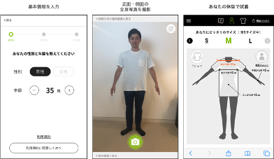 unisize(https://cl.unisize.makip.co.jp/)はネットで洋服を買うときに、より身体に合ったサイズを推奨するレコメンドエンジンです。最短1分の簡単なアンケートに答えるだけで、メジャーで測ることなく自分に合ったおすすめのサイズを確認したり、機械学習アルゴリズム(AI)を用い、お手持ちのスマートフォン端末で撮影した正面と側面の全身写真から、腕の長さや肩幅などの体型を採寸して、サイズを確認することができます。従来のような専門知識やメジャーを用いて採寸するような手間をかけずとも、自分に合うおすすめサイズを確認できます。また、過去に買った洋服と比較する購入履歴比較機能なども併設し、ユーザーの持つ情報に合わせてサイズを確認することができます(※特許取得)。