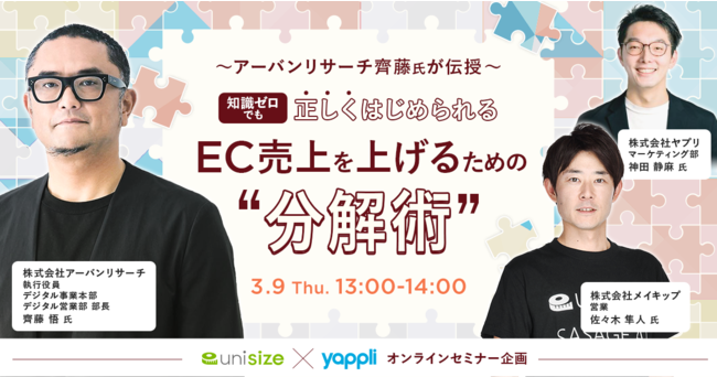 3月9日(木)『~アーバンリサーチ齊藤氏が伝授~知識ゼロでも正しくはじめられるEC売上を上げるための”分解術”』オンラインセミナー開催