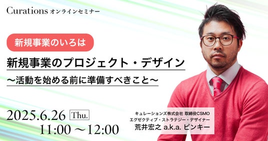 顧客企業のビジネス変革を成功に導くキュレーションズ株式会社(本社:東京都渋谷区、担当:野崎、以下当社)は、「【新規事業のいろは】新規事業のプロジェクト・デザイン ~活動を始める前に準備すべきこと」を2025年6月26日(木)に開催いたします。