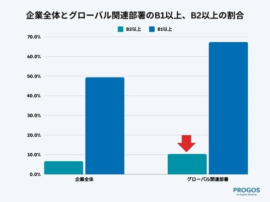 企業全体とグローバル関連部署のB1以上、B2以上の割合