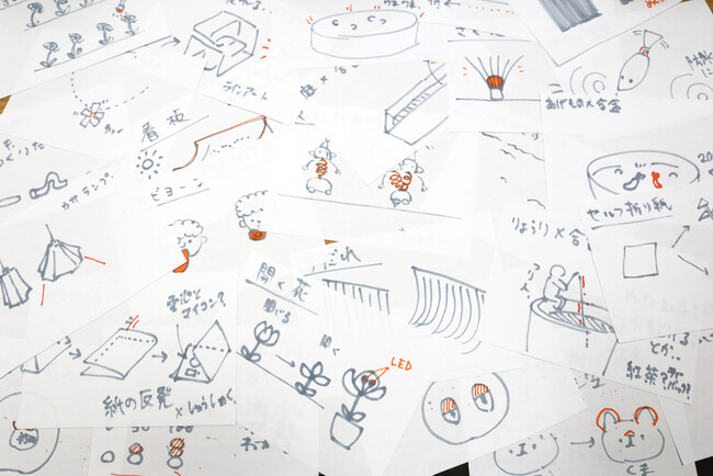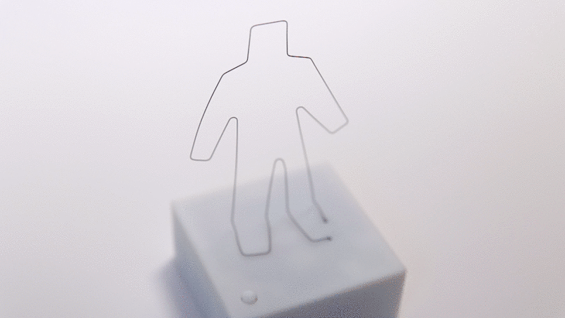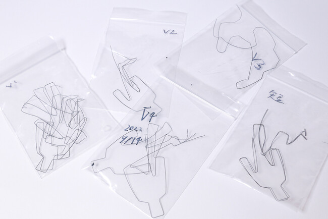「なにか一緒に面白いことをしよう」というブレストから始まり、形状記憶合金を使った様々なプロダクトのアイディアをざっくばらんに話し合いを重ねていました。そんな中でたどりついたのが今回の不思議な動くオブジェ「線人間」です。