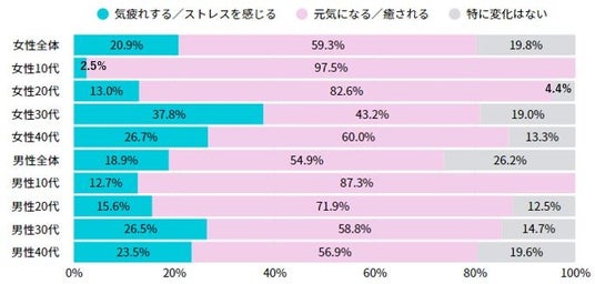 一方で、女性30代では「気疲れする/ストレスを感じる」と回答した人が4割近くにのぼり、この層で帰省意向が低くなる傾向との関係性がうかがえます。