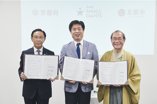 Forbes JAPAN SMALL GIANTS」を運営するリンクタイズ株式会社(代表取締役CEO 兼 Forbes JAPAN Founder:高野真)は、地域における事業および自治体の取り組みと、イノベーションの創出を支援する目的で、京都府・京都市と三者での連携協定を締結することとなりました。Forbes JAPAN SMALL GIANTSの連携協定の取り組みは、今回で全国12例目となり、三者連携協定の締結は初となります。