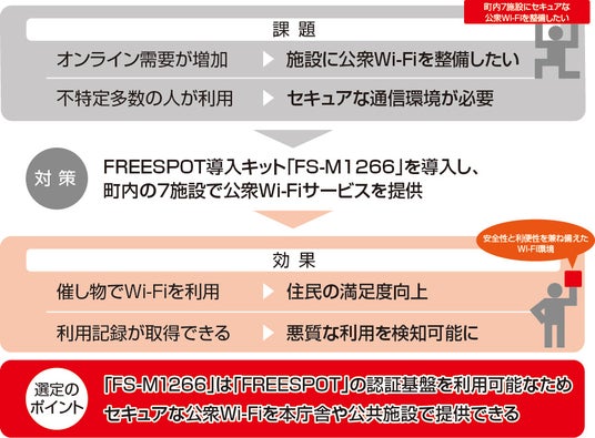 誰もが安心して利用できる高セキュリティーで快適な公衆Wi-Fiを整備。 オンライン動画などを活用したイベントや研修が可能になり、住民満足度を向上