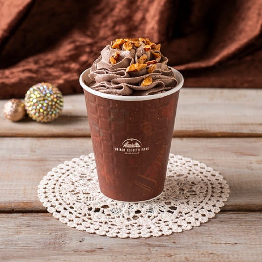 白い恋人パークオリジナルチョコレートドリンクの上に、チョコホイップをトッピング。