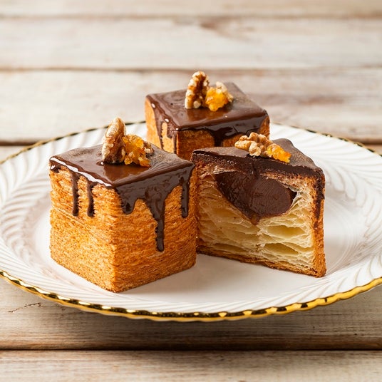 一層一層ていねいに織り込んだデニッシュ生地に、オレンジ風味のガナッシュを合わせました。