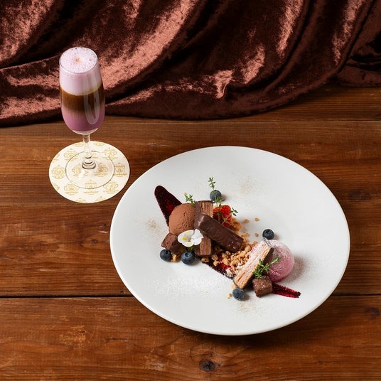 この冬発売20周年を迎える美冬を、皿盛りデザートにアレンジしました。チョコレートの苦みとベリーのマリアージュをお楽しみください。