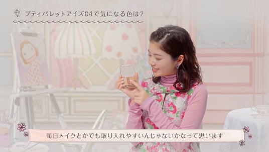 今回のCMでは、多色なのに持ち歩けるパレットのサイズ感やかわいらしさ、アイコーデが増える楽しさといった「プティパレットアイズ」の魅力を、商品名のフランス語“プティ”の甘さをプラスして演出。印象的なイラストの世界で表現しました。春らしいパステルカラーの衣装に身を包み、フランス語をかわいく話す小芝さんにもご注目ください!