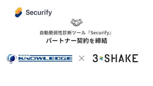 株式会社スリーシェイク(本社:東京都新宿区、代表取締役社長:吉田 拓真、以下スリーシェイク)は、日本ナレッジ株式会社(本社:東京都台東区、代表取締役社長:藤井 洋一、以下日本ナレッジ)と、手軽に社内でセキュリティ診断を実施できる自動脆弱性診断ツール「Securify(セキュリファイ)」において、パートナー契約を締結したことをお知らせします。
