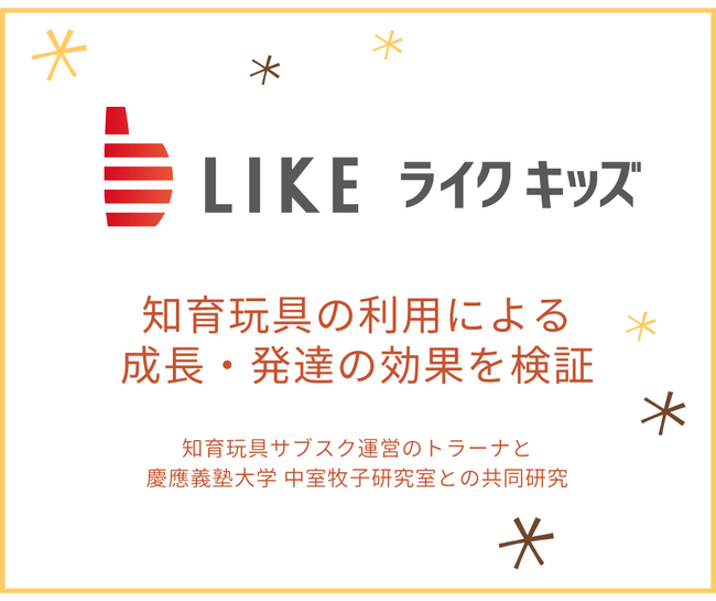 保育・人材・介護の事業を展開するライク株式会社(東京本社:東京都渋谷区、代表取締役会長 兼 社長:岡本 泰彦、以下 ライク)の子会社で、子育て支援サービス事業を営むライクキッズ株式会社(本社:東京都渋谷区、代表取締役社長:岡本 拓岳、以下 ライクキッズ)は、未就学児向け知育玩具サブスクリプション・サービス「トイサブ!」を運営する株式会社トラーナ(本社:東京都中野区、代表取締役:志田 典道 以下、トラーナ)、慶應義塾大学の中室牧子研究室と「知育玩具の適時適切な利用による成長発達の効果」に関する共同研究を2023年7月より開始いたします。