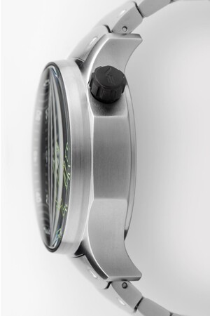 リューズは、斜めについており左右どちらの腕に着けても邪魔をしません。