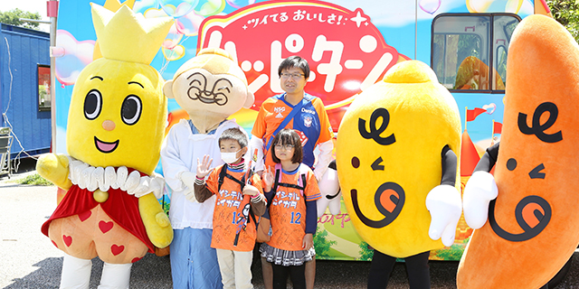 「ハッピーターン」でおなじみの「ターン王子」、ぽたぽた焼きのキャラクターとして親しまれている「ぽたぽたおばあちゃん」が来場。さらに特別車両「柿の種号」も駆けつけ、柿の種のキャラクター「たねっち」と「ぴーなっち」も参加。勢ぞろいする亀田製菓ファミリーとの記念撮影でお楽しみください。