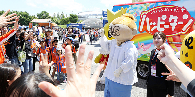 試合当日の15:00から19:00まで、Eゲート前広場には「ハッピーブース」が登場! 楽しいイベントの数々で”ハッピー”にお過ごしください!