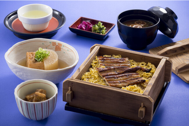 高砂名物「焼き穴子せいろ蒸し」をメインにした昼膳。だしで炊いたご飯の上に、錦糸玉子、身の肥えた香ばしい焼き穴子をのせ、ふっくらと蒸し上げました。甘辛い自家製ダレが穴子の旨みと香味を際立たせ、滋味豊かな味わいに。大根や厚あげなど「京和田」名物のおでんや季節の小鉢とともにお愉しみください。