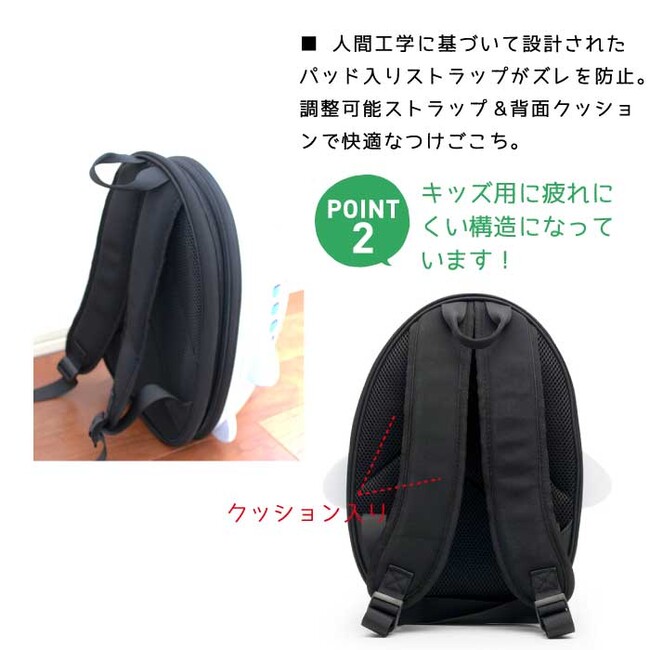 人間工学に基づいて設計された軽くてパッド入りの肩ベルトで大人も安心して担がせることができます。