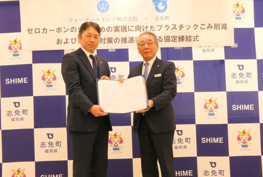 浄水型ウォーターサーバーのレンタル事業を行うウォータースタンド株式会社(本社:埼玉県さいたま市、代表取締役社長:本多 均、以下当社)は、2025年3月26日(水)に福岡県志免町(町長:世利 良末)と「ゼロカーボンのまちしめの実現に向けたプラスチックごみ削減および熱中症対策の推進に関する協定」を締結したことをお知らせいたします。