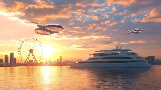空飛ぶクルマが大阪市上空を飛行するイメージ