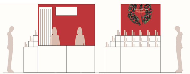 3つのタイプ別(画像左:トレンドに敏感なファッショニスタな方 中:おうち時間を充実させたい方 右:かわいい・フェミニンな雰囲気の方)でクリスマスギフトにおすすめの化粧品を提案いたします。またコスメティックカウンターのスタッフがご予算やお客様のイメージに合わせたプレゼント選びのお手伝いをいたします。