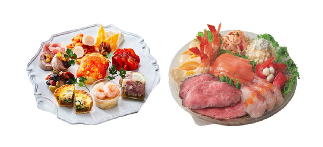 クリスマスパーティーにぴったりの取り分けて食べるお肉やお魚のオードブル