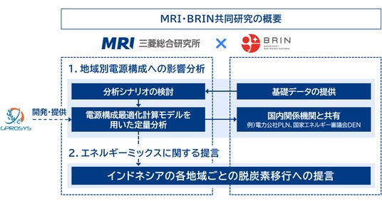 株式会社三菱総合研究所(代表取締役社長:籔田健二、以下 MRI)は、インドネシアの政府系研究を統合推進する国立研究機関であるBadan Riset dan Inovasi Nasional(以下 BRIN)と、3月12日、共同研究契約を締結しました。本契約に基づき、両者はインドネシアの脱炭素と経済成長の両立に向けた研究を推進します。
