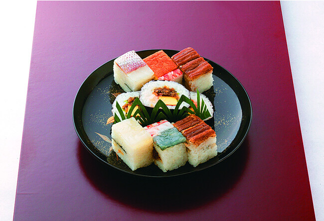 1653年に大阪で「雀鮨」の商いを始めて以来370年近くの歴史を持つ「大阪すし」の元祖。「小鯛雀鮨」、「阿奈古すし」、「阿奈古巻」など「すし萬」伝統の味を彩りよく詰め合わせました。その美しさから「二寸六分の懐石」と称されすし萬でも特に人気の高いすしです。