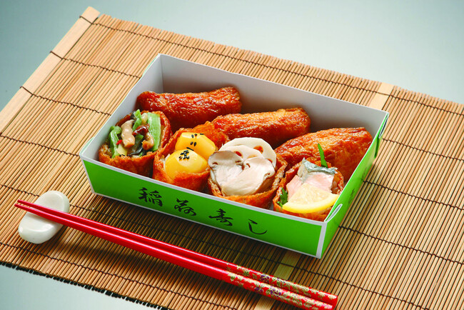 1888年創業。豊橋駅で稲荷すしを作り続けて130余年。豊橋の名物駅弁にもなっている濃い味付けが特徴です。壼屋自慢のこってりとした「甘口の稲荷すし」と秋の食材を使用した季節の稲荷ずしとの詰合せです。