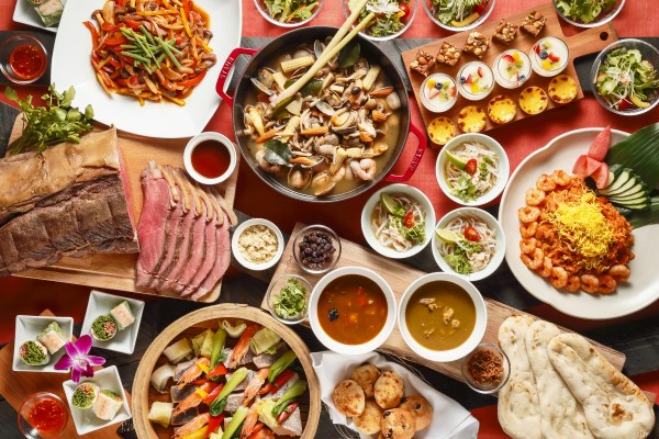 きな窓から降り注ぐ日差しが印象的なオールデイダイニング。地元の旬の食材を厳選した国際色豊かな料理でお待ちしております。