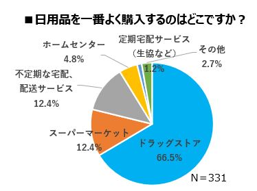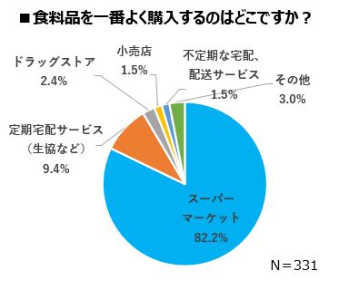 食料品は「スーパーマーケット」、日用品は「ドラッグストア」で購入。買い物のストレスは子連れでの買い物、重い荷物の持ち運び
