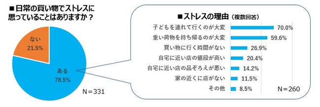 ◆買い物のストレスは78.5%が「ある」。重いものでも、値段によって購入場所を決めるという声も